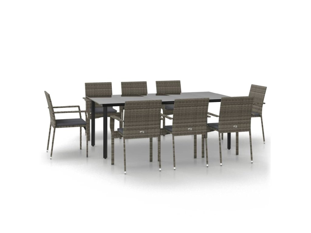 9dílný zahradní jídelní set s poduškami černý a šedý polyratan 3185142