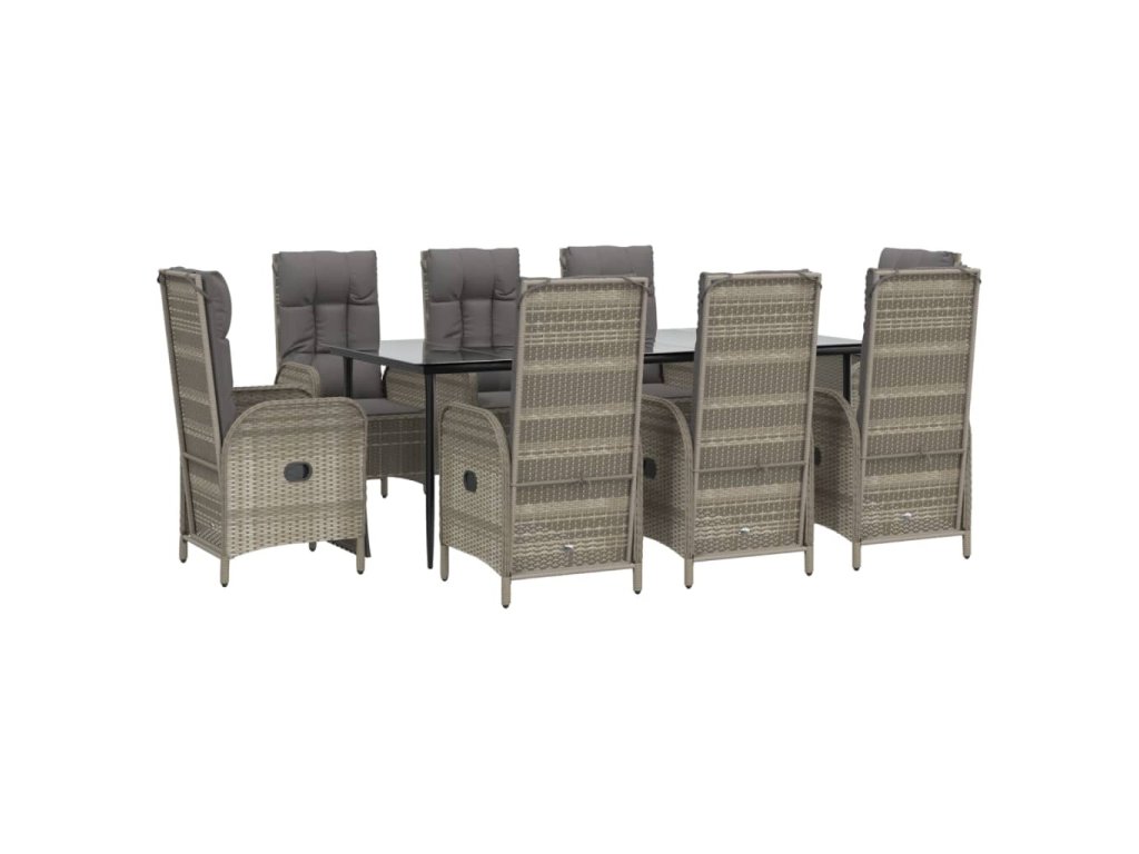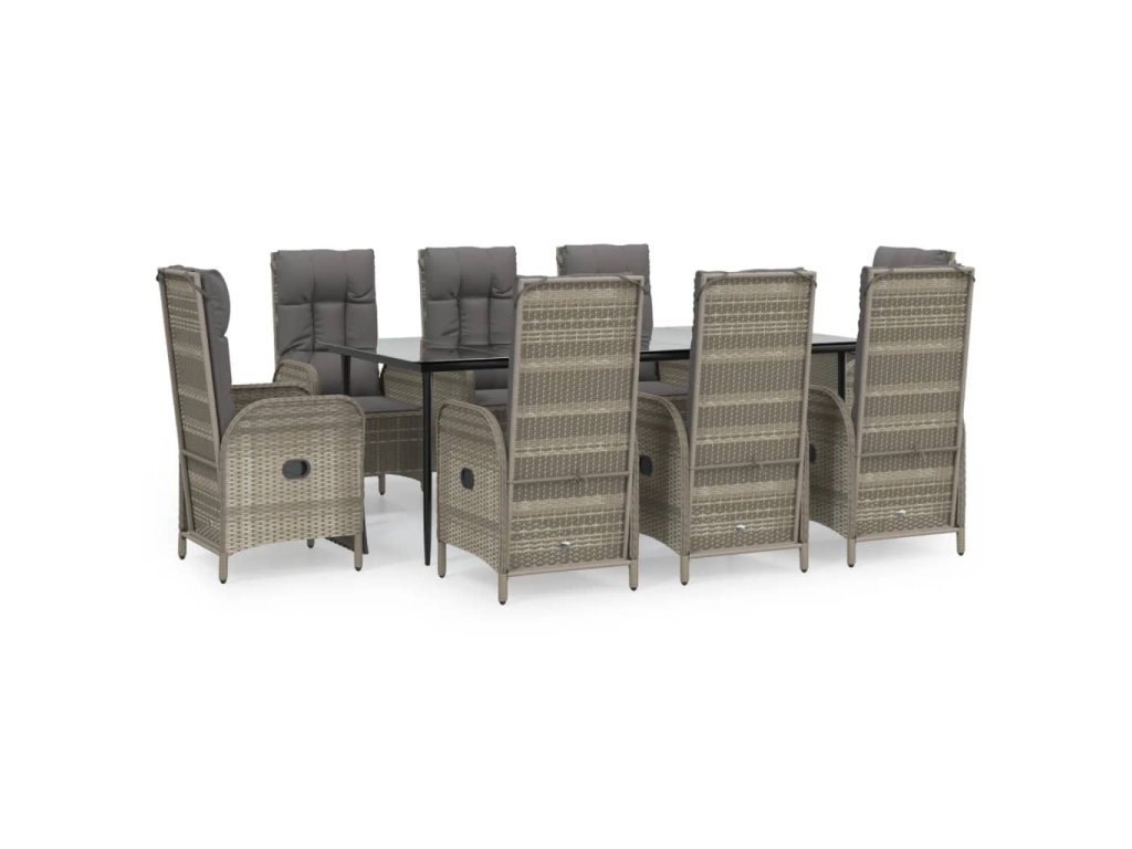 9dílný zahradní jídelní set s poduškami černý a šedý polyratan 3185186