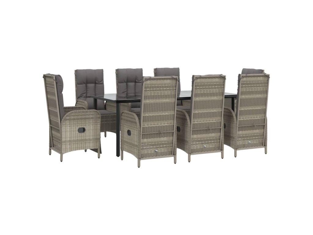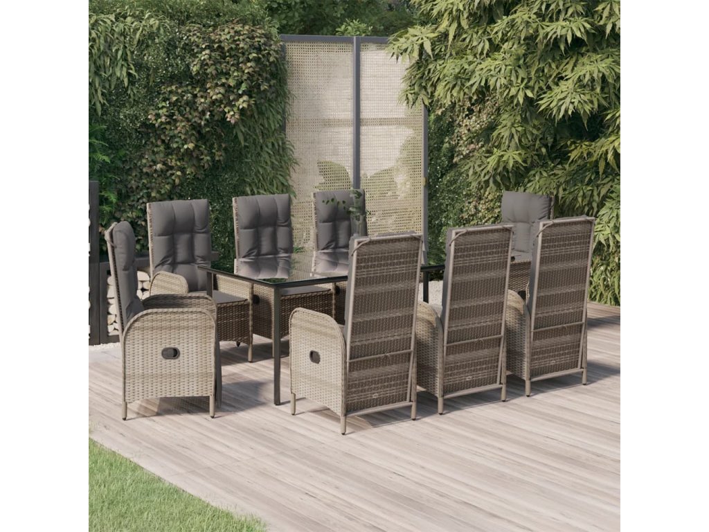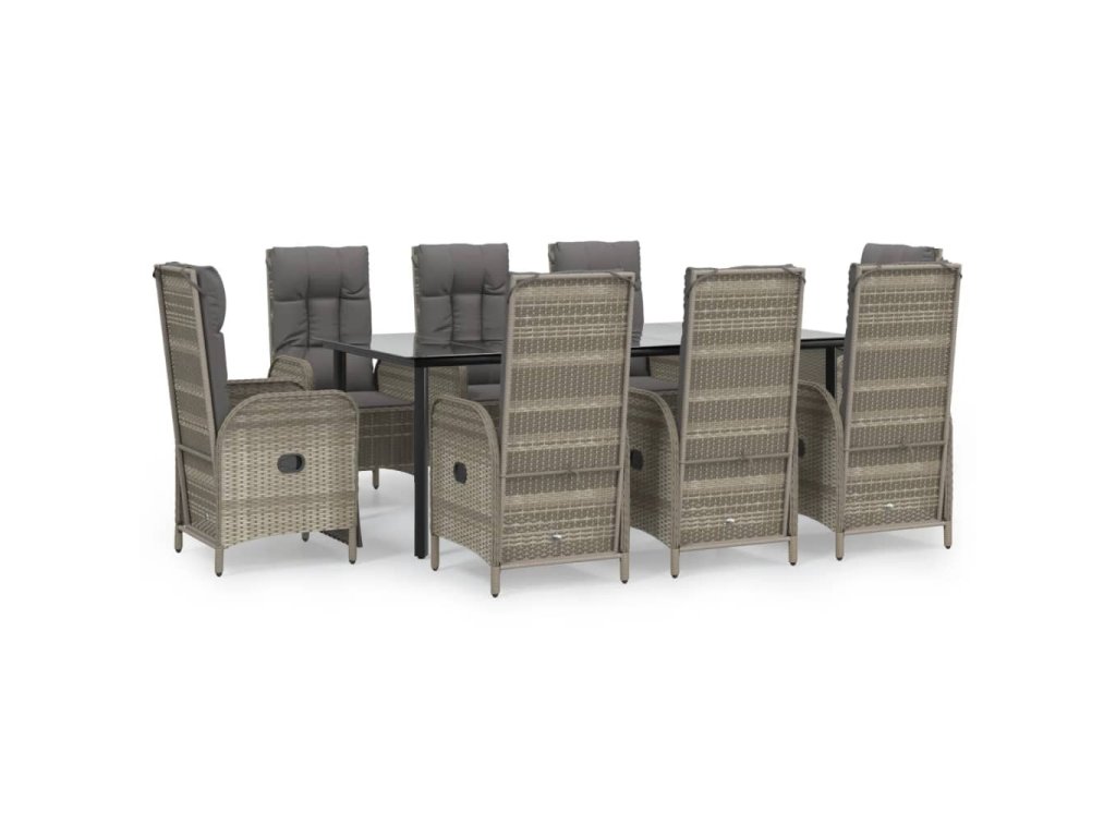 9dílný zahradní jídelní set s poduškami černý a šedý polyratan 3185206