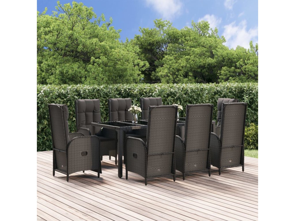 9dílný zahradní jídelní set s poduškami černý polyratan 3185067