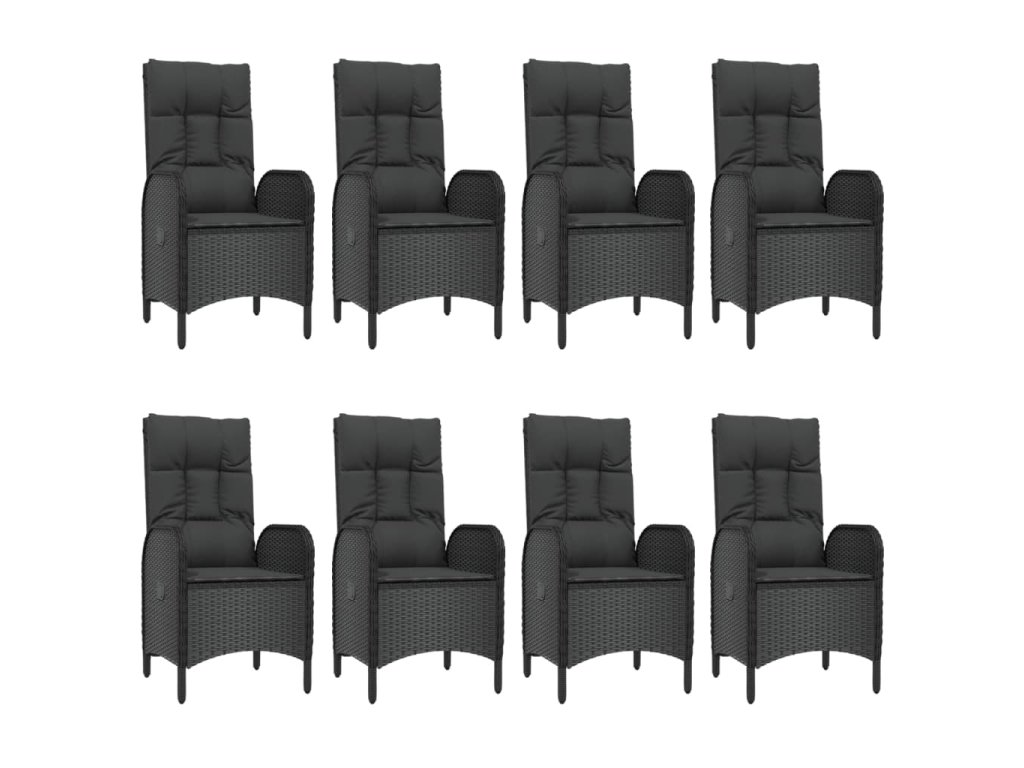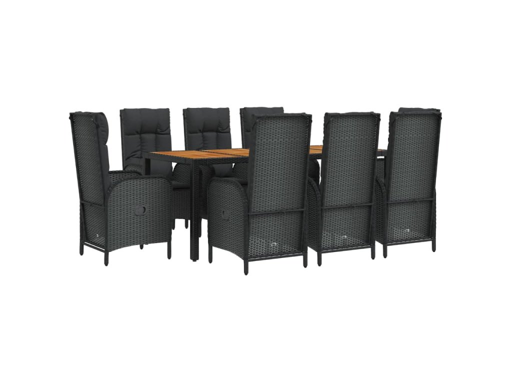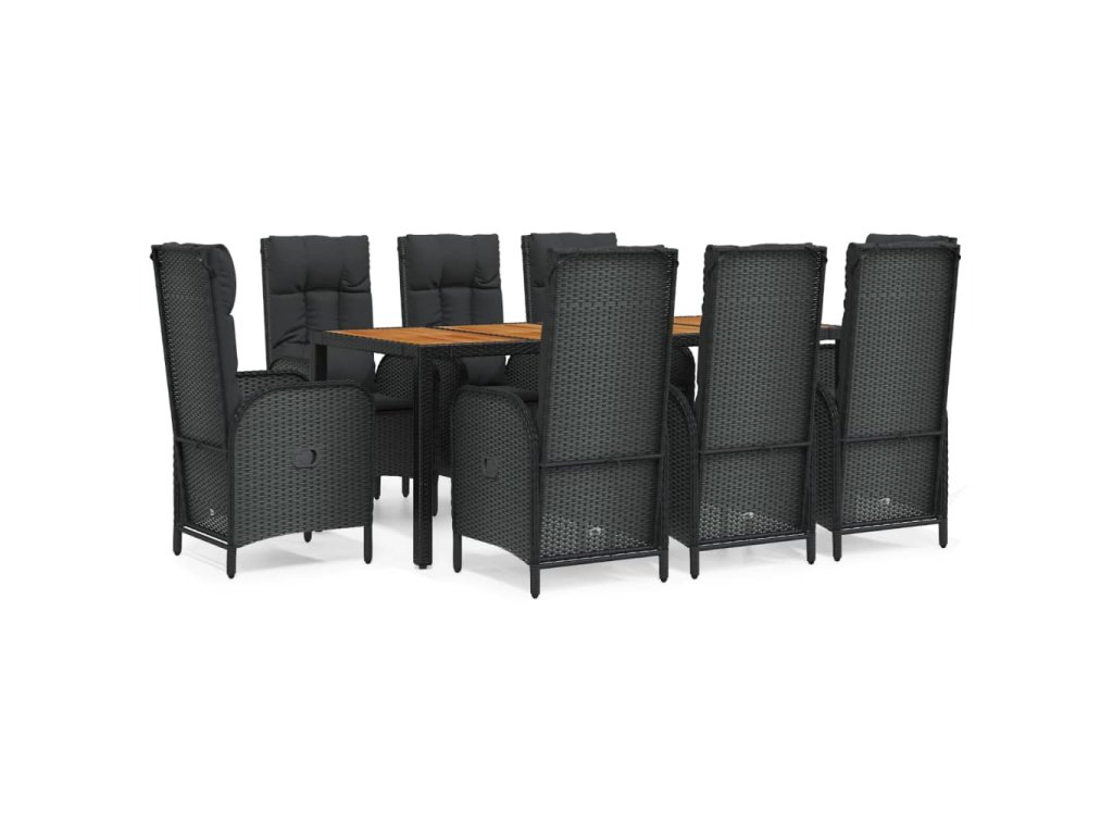9dílný zahradní jídelní set s poduškami černý polyratan 3185073