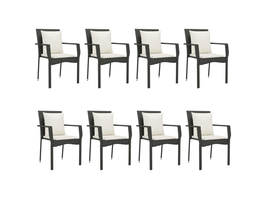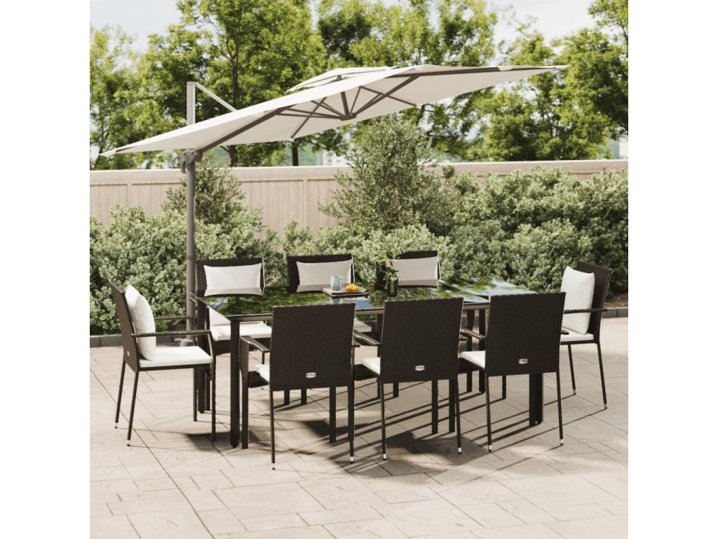 9dílný zahradní jídelní set s poduškami černý polyratan 3185112