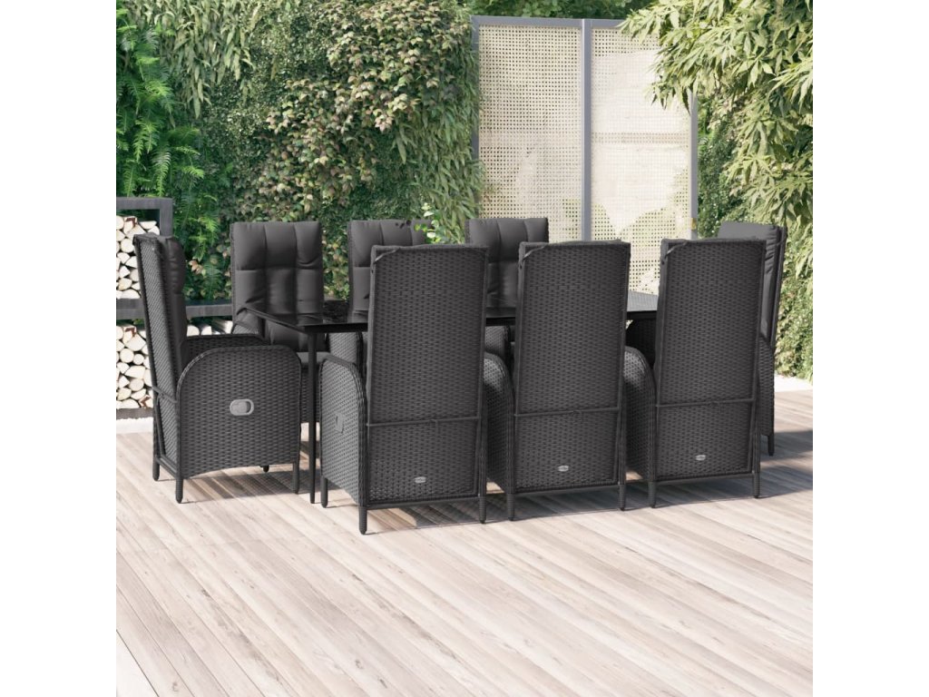 9dílný zahradní jídelní set s poduškami černý polyratan 3185174