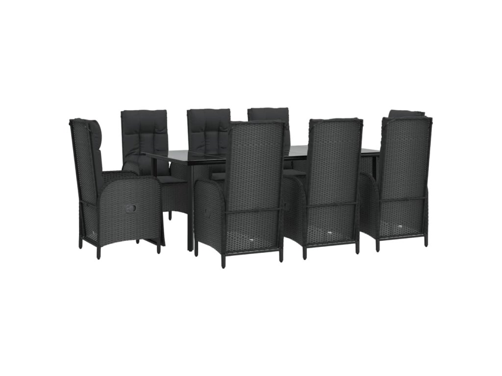 9dílný zahradní jídelní set s poduškami černý polyratan 3185196