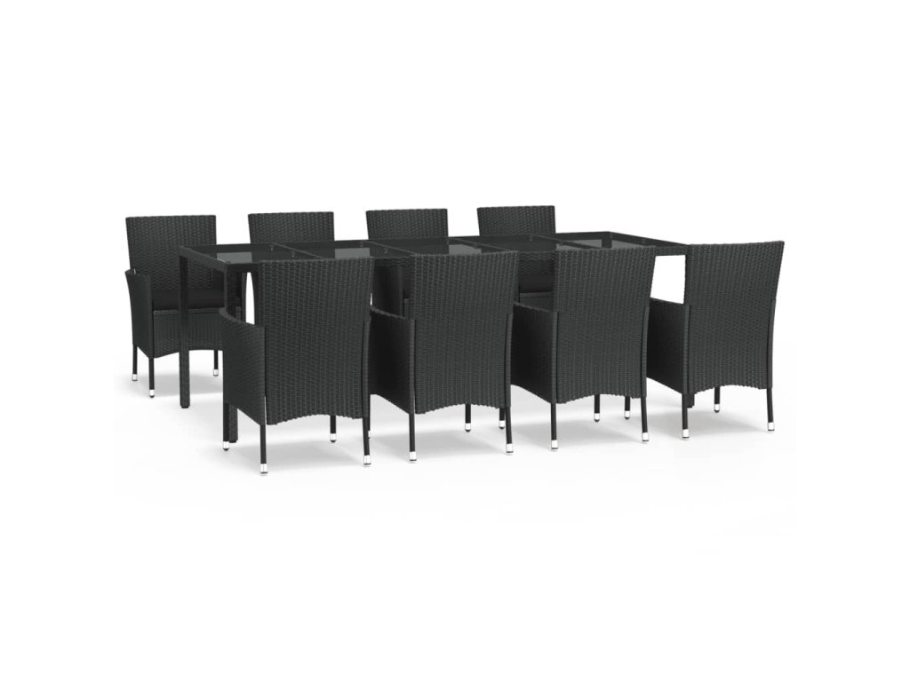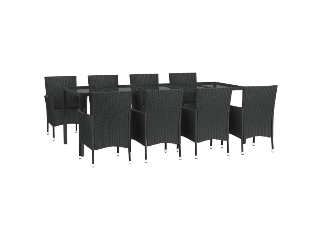 9dílný zahradní jídelní set s poduškami černý polyratan 3187330