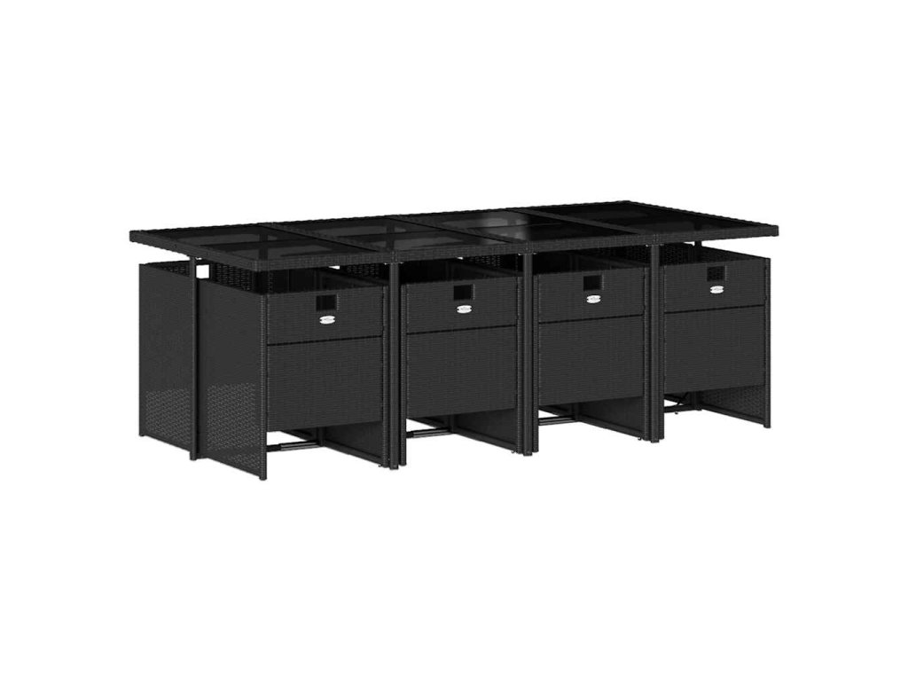 9dílný zahradní jídelní set s poduškami černý polyratan 3210558