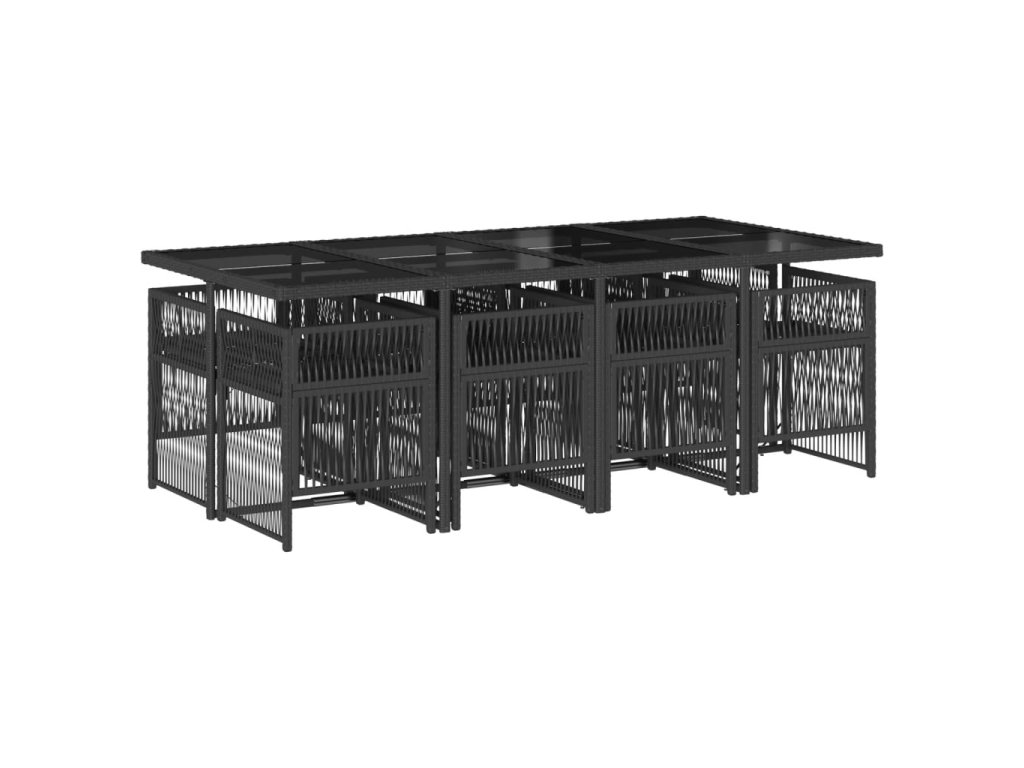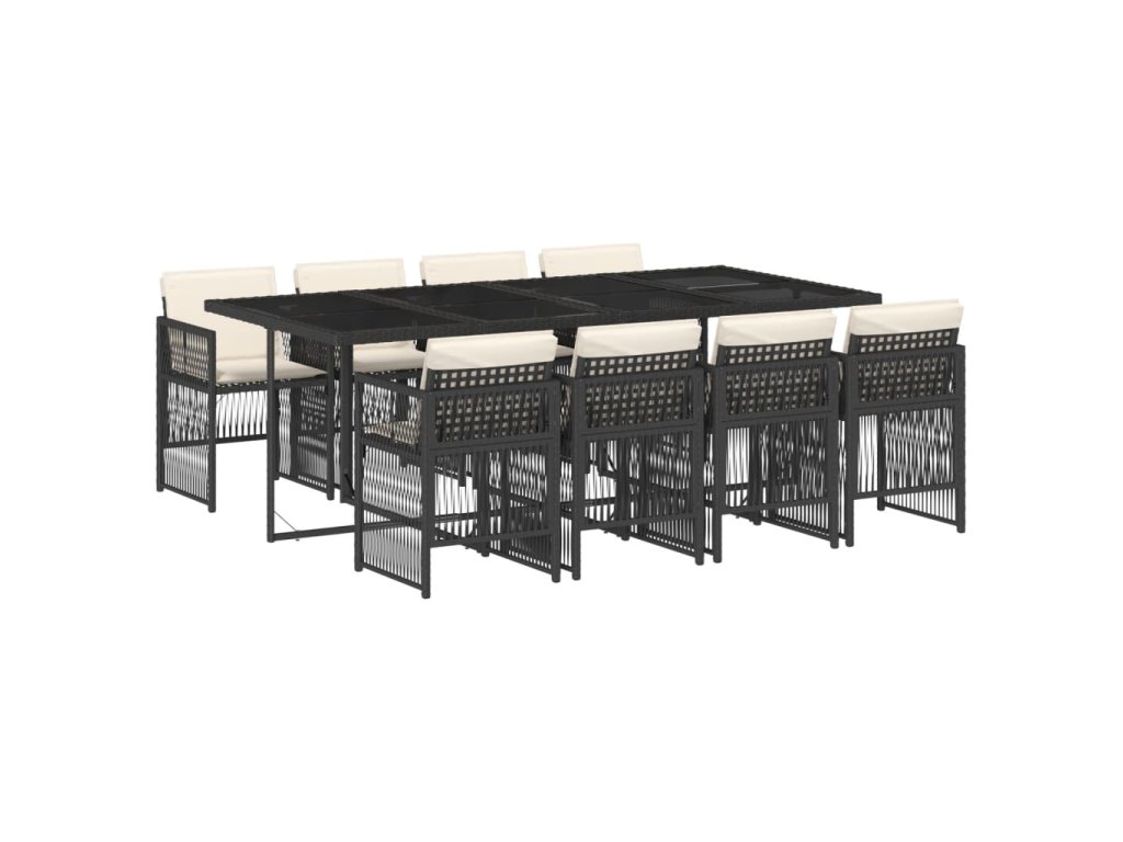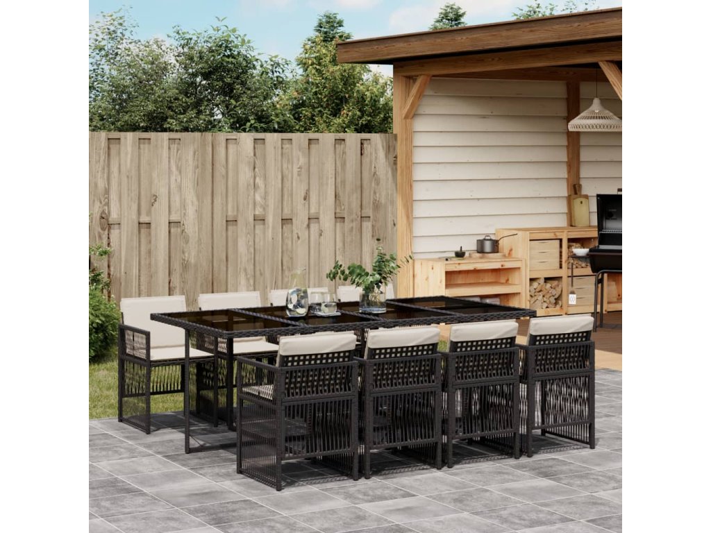 9dílný zahradní jídelní set s poduškami černý polyratan 3210918