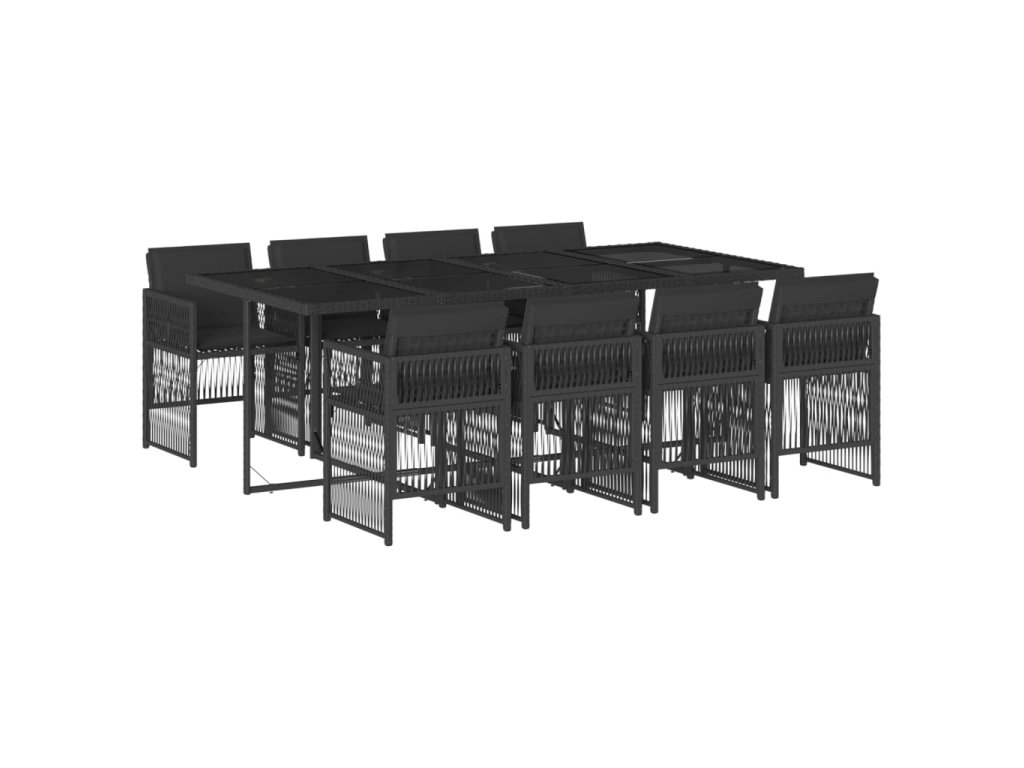 9dílný zahradní jídelní set s poduškami černý polyratan 3210919