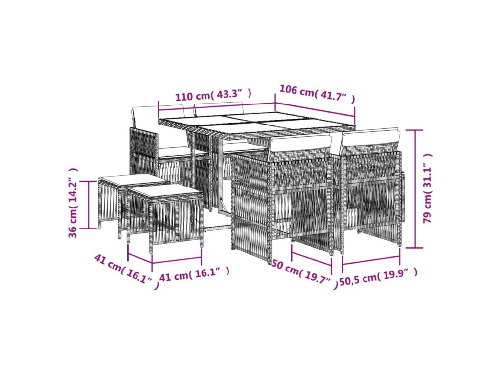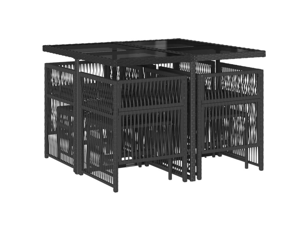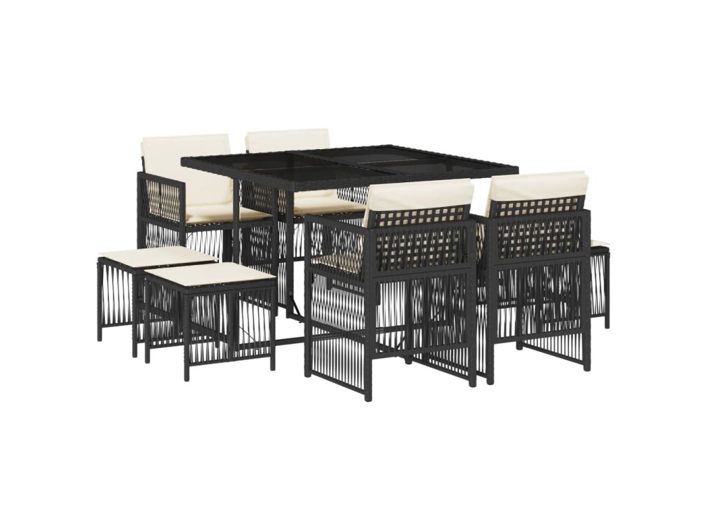 9dílný zahradní jídelní set s poduškami černý polyratan 3210954