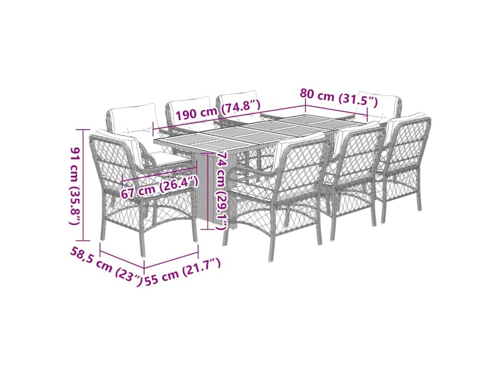 9dílný zahradní jídelní set s poduškami černý polyratan 3212073