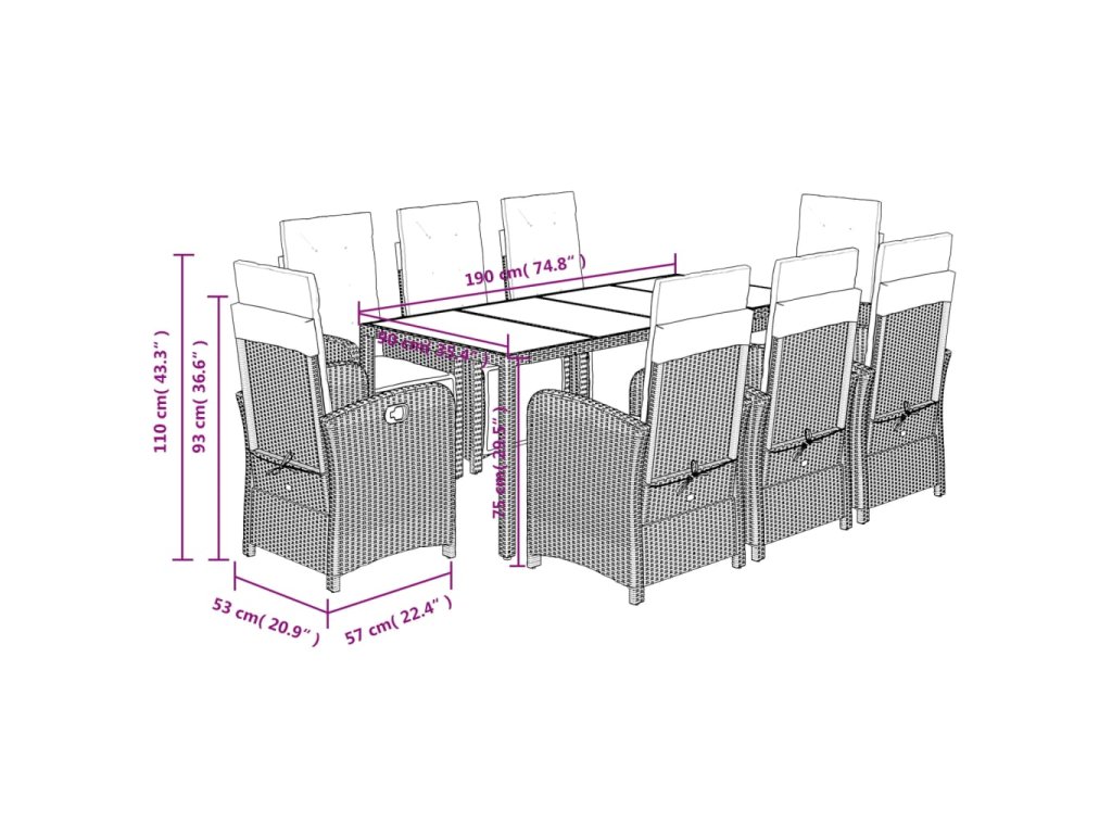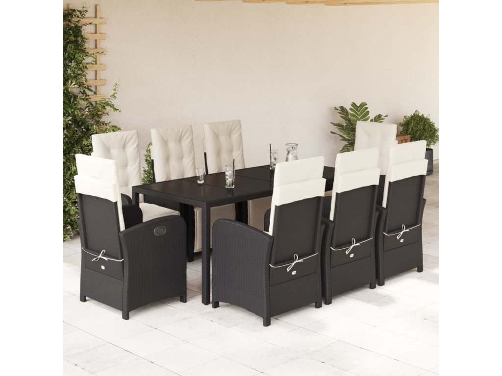 9dílný zahradní jídelní set s poduškami černý polyratan 3212455