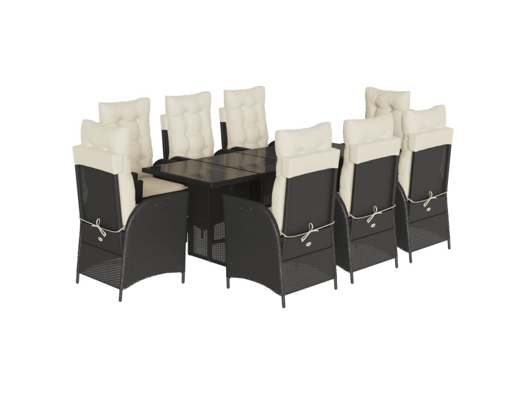 9dílný zahradní jídelní set s poduškami černý polyratan 3213114