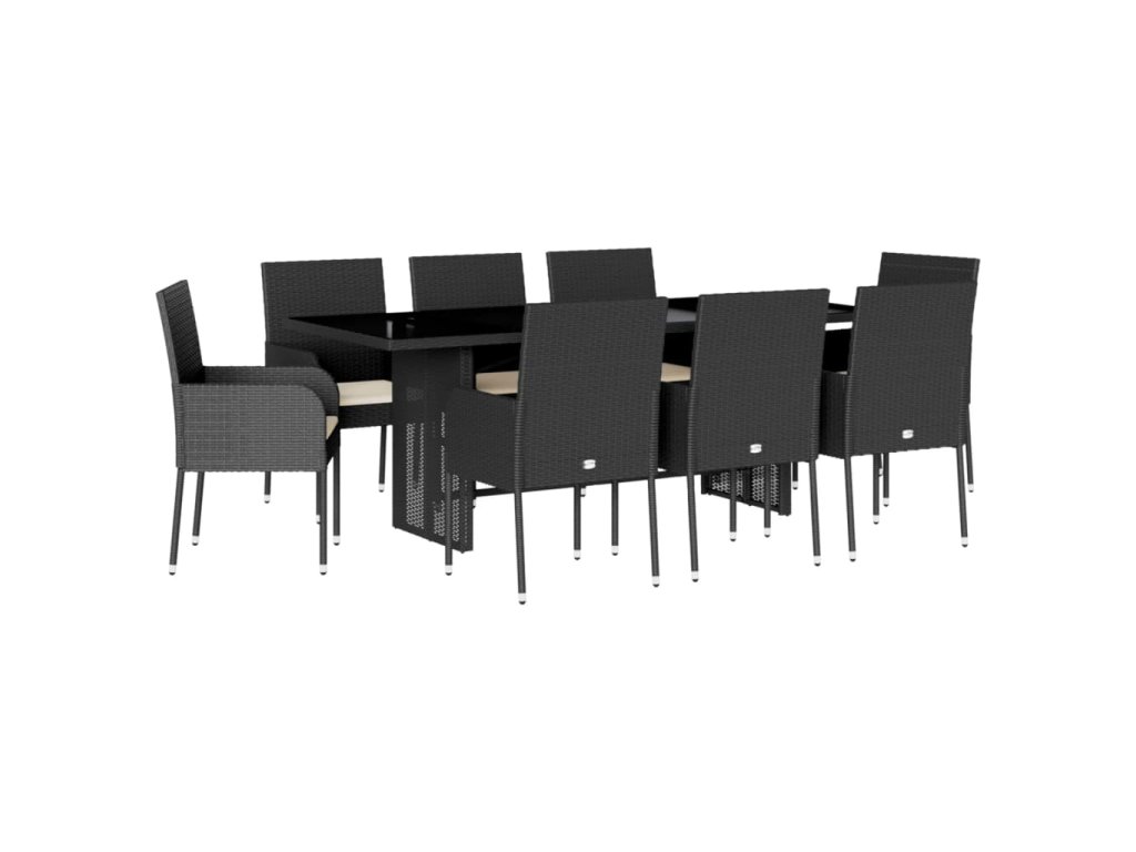 9dílný zahradní jídelní set s poduškami černý polyratan 3213507