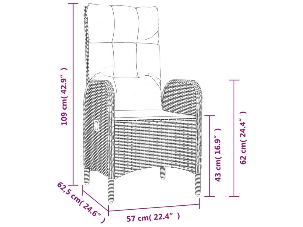 - Materiál: PE ratan, práškově lakovaná ocel, masivní akáciové dřevo s olejovou povrchovou úpravou