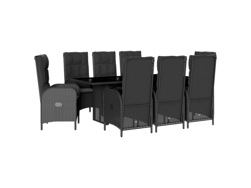 9dílný zahradní jídelní set s poduškami černý polyratan 3213525