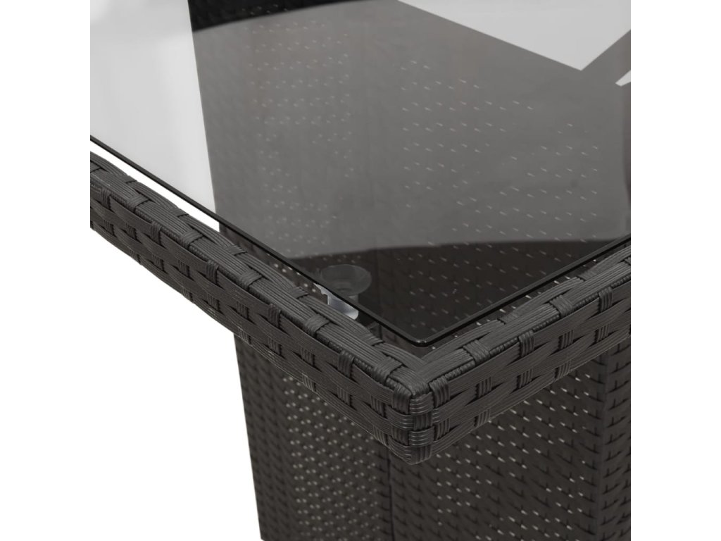 - Materiál: PE ratan, práškově lakovaná ocel, tvrzené sklo