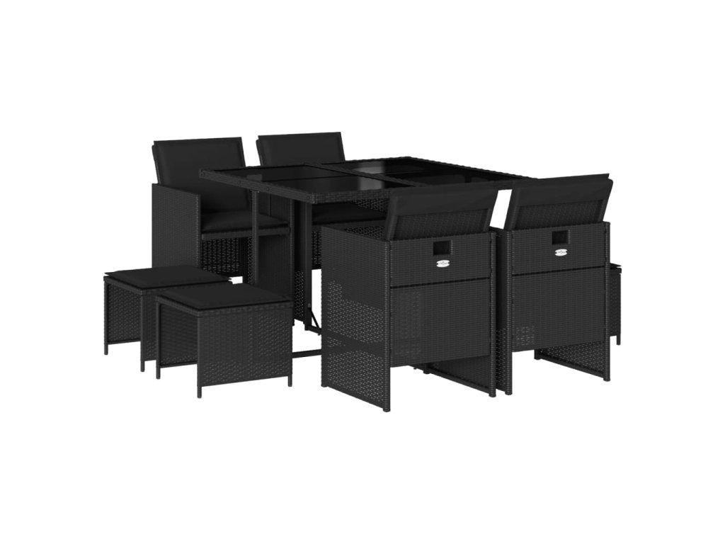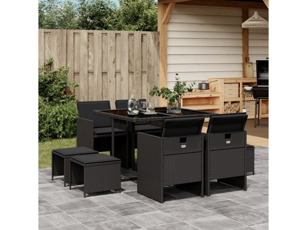 9dílný zahradní jídelní set s poduškami černý polyratan 3277722