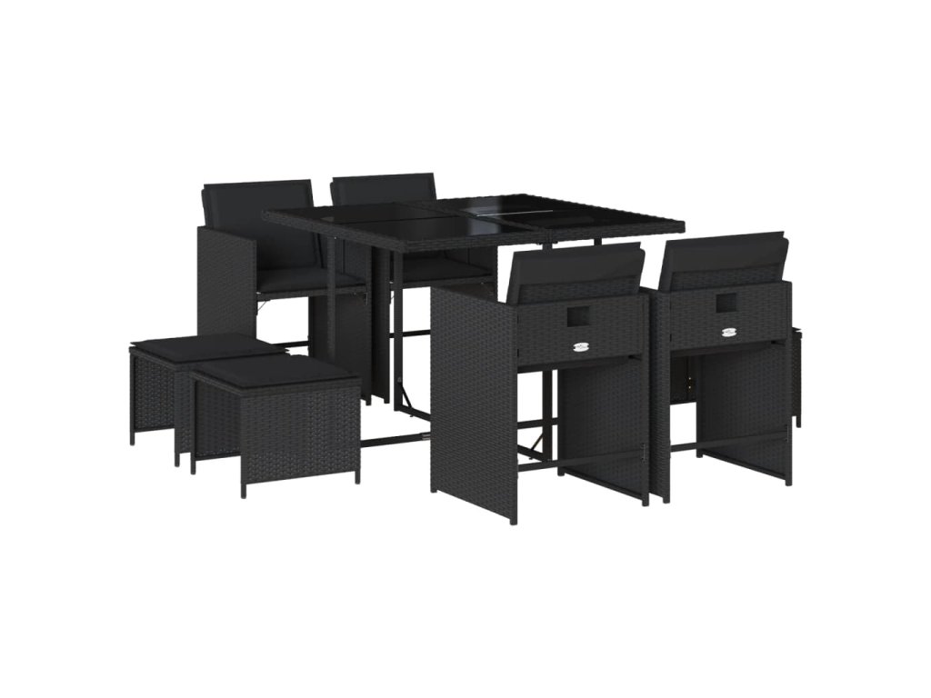 9dílný zahradní jídelní set s poduškami černý polyratan 3277902