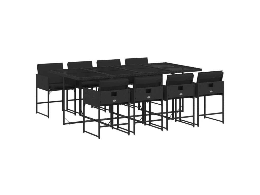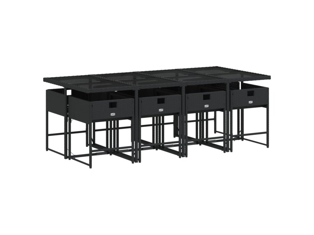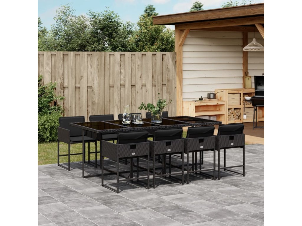 9dílný zahradní jídelní set s poduškami černý polyratan 3278046