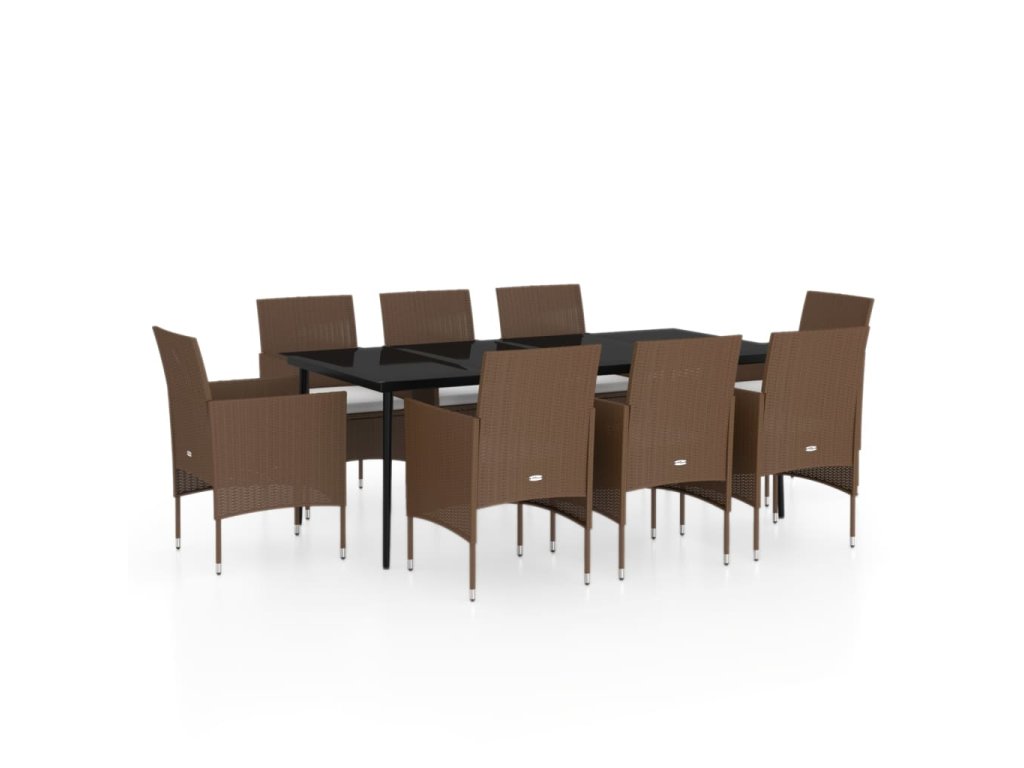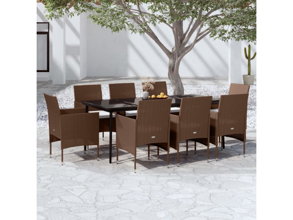 9dílný zahradní jídelní set s poduškami hnědočerný 3099322