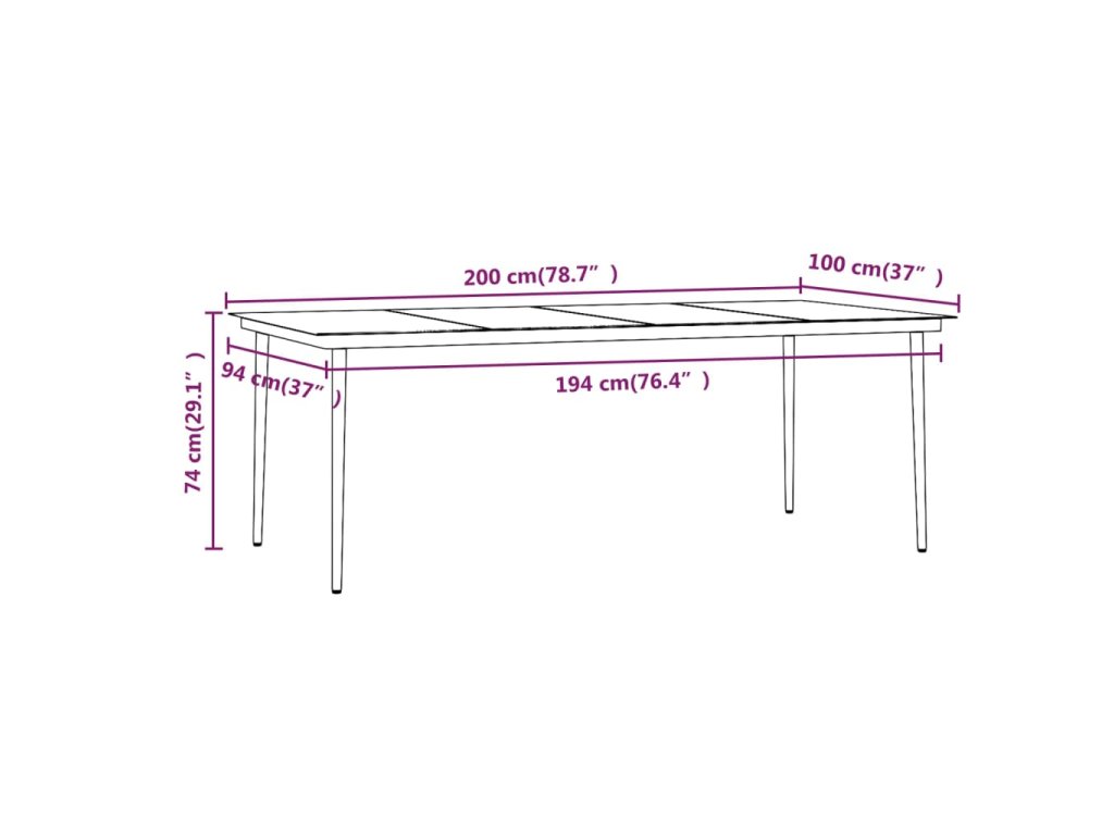 - Rozměry stolu: 200 x 100 x 74 cm (D x Š x V)