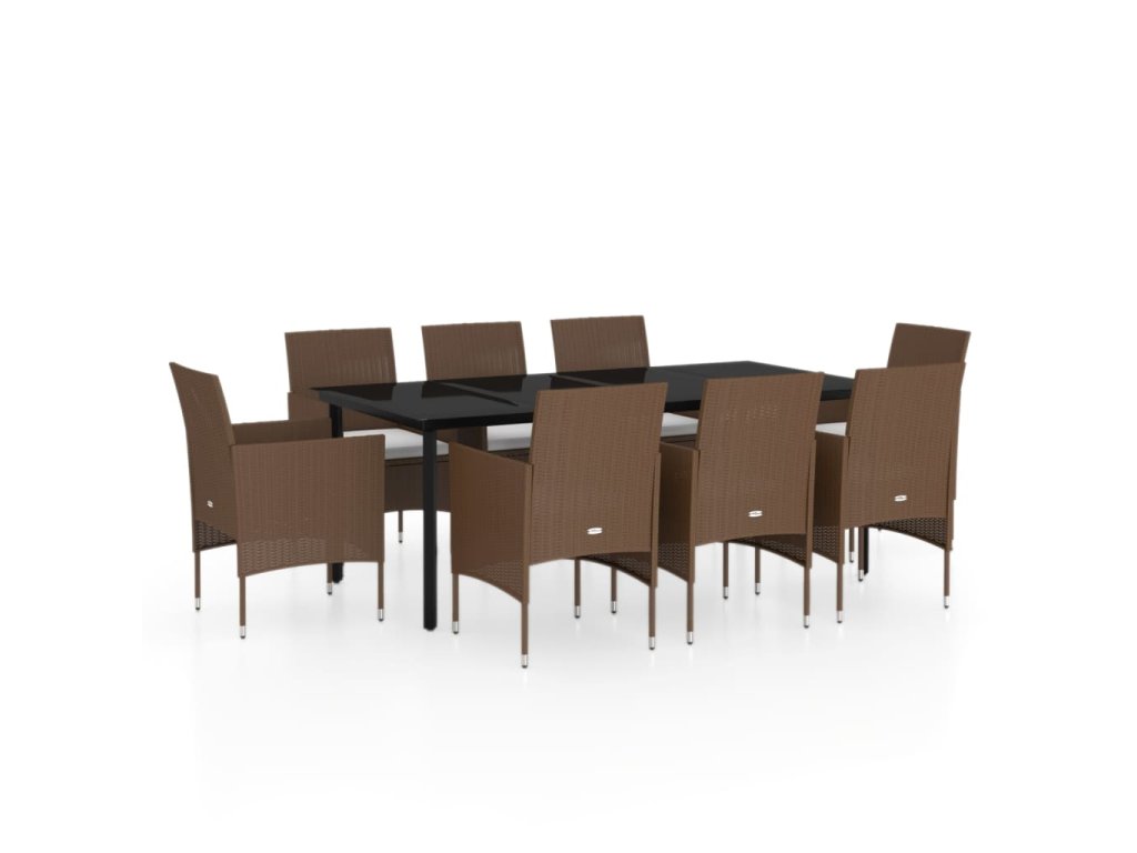 9dílný zahradní jídelní set s poduškami hnědý a černý 3099304