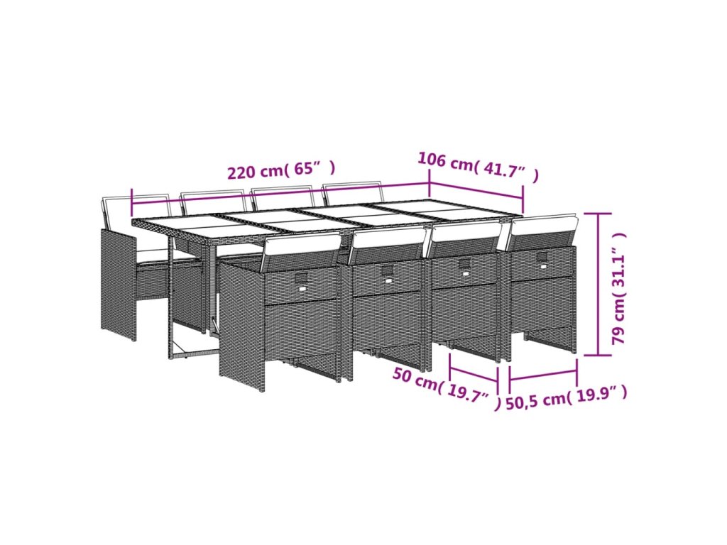 9dílný zahradní jídelní set s poduškami hnědý polyratan 3210561