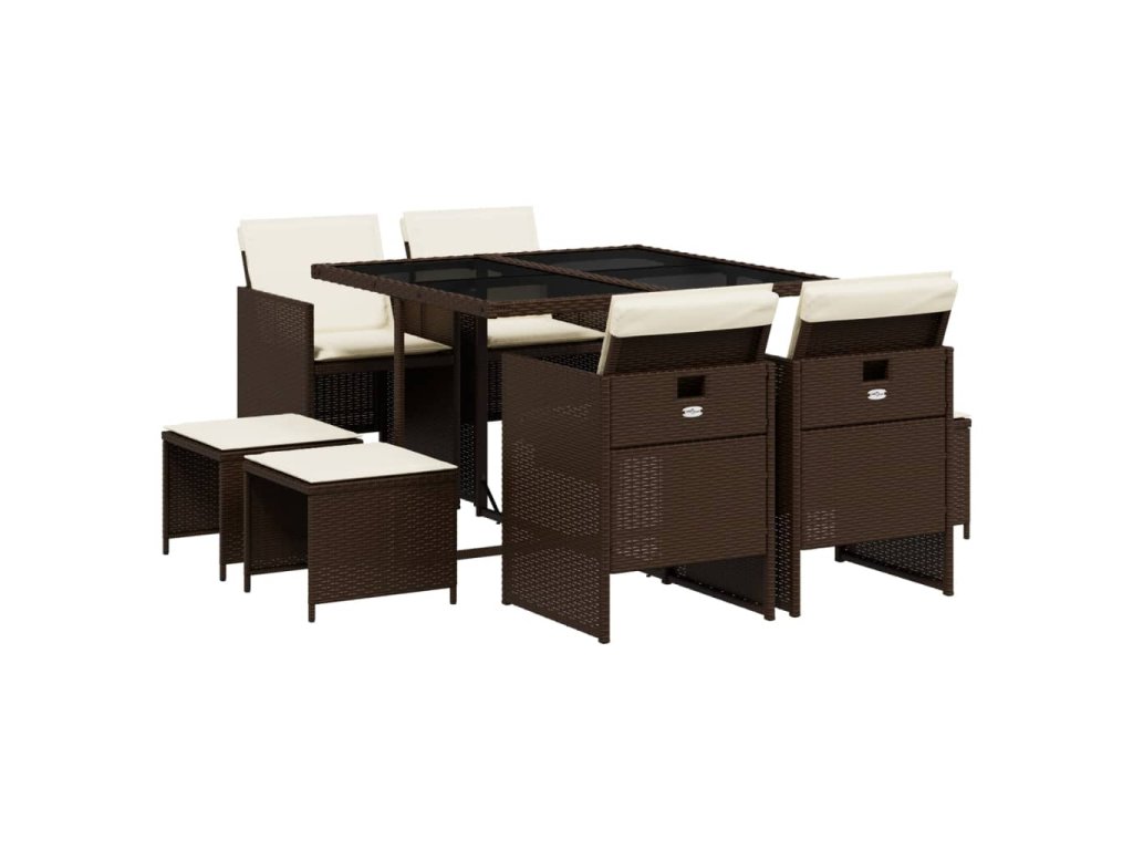 9dílný zahradní jídelní set s poduškami hnědý polyratan 3210597