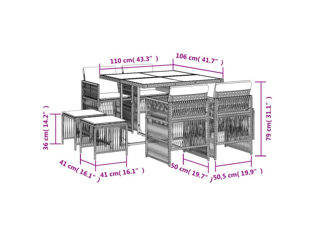 9dílný zahradní jídelní set s poduškami hnědý polyratan 3210957