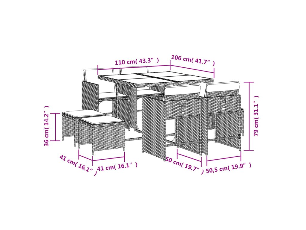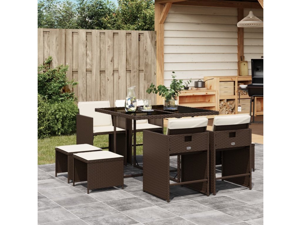 9dílný zahradní jídelní set s poduškami hnědý polyratan 3211137