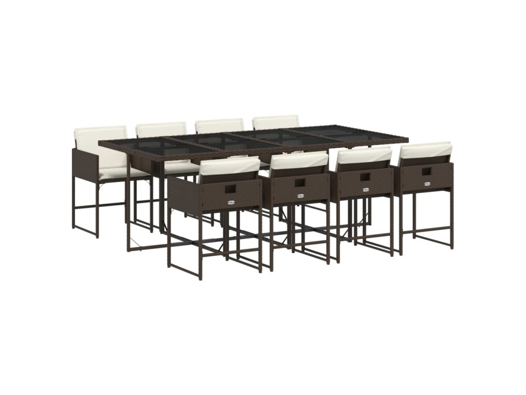 9dílný zahradní jídelní set s poduškami hnědý polyratan 3211281