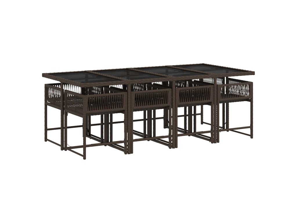 9dílný zahradní jídelní set s poduškami hnědý polyratan 3211461