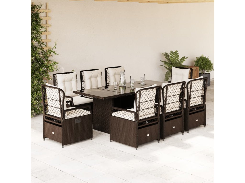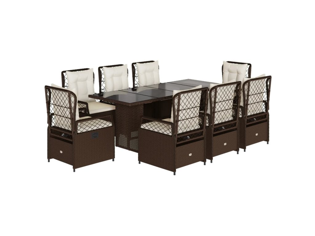 9dílný zahradní jídelní set s poduškami hnědý polyratan 3262927