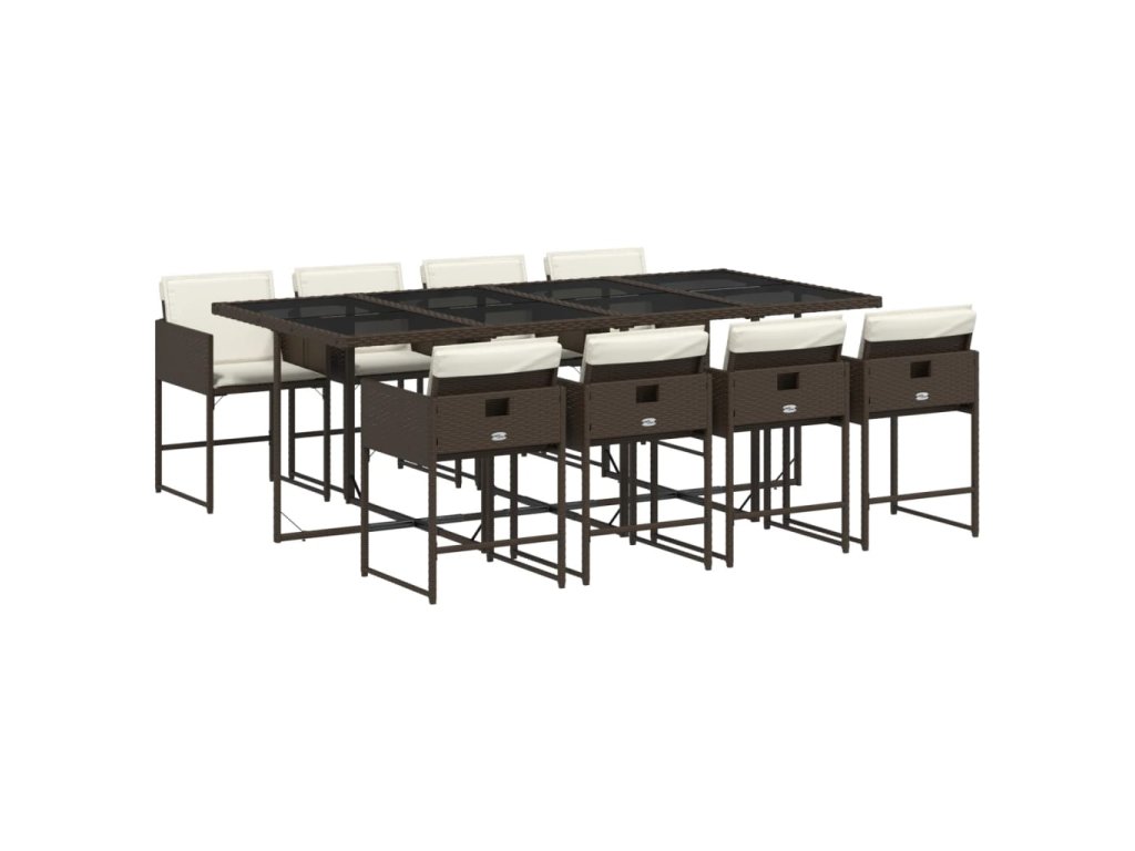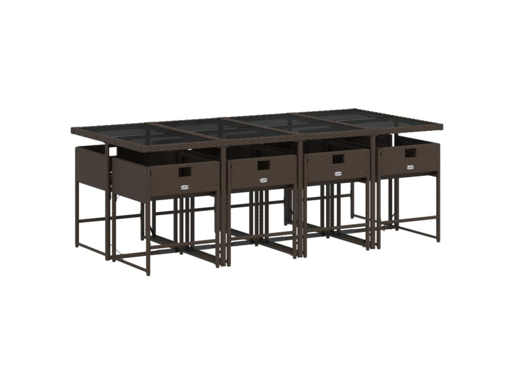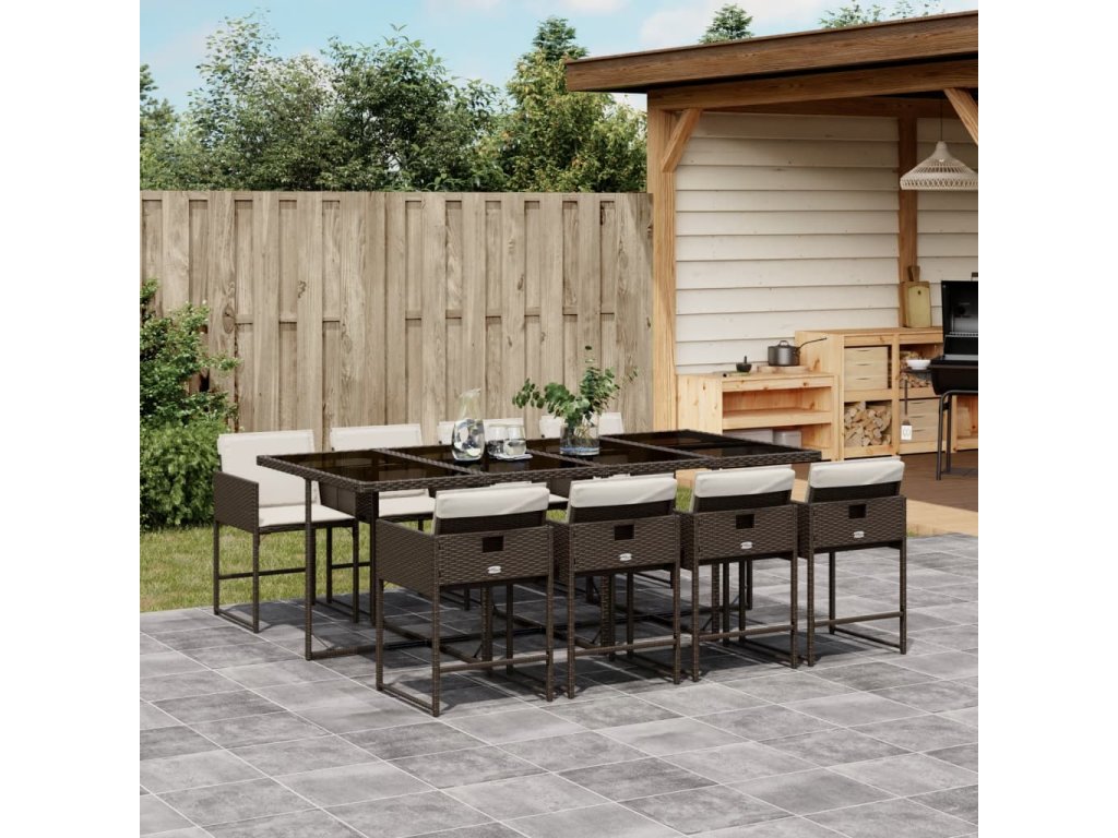 9dílný zahradní jídelní set s poduškami hnědý polyratan 3278048