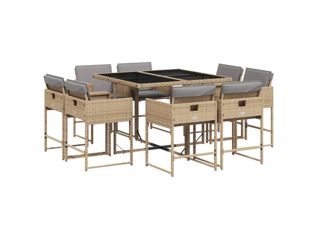 9dílný zahradní jídelní set s poduškami mix béžové polyratan 3211380