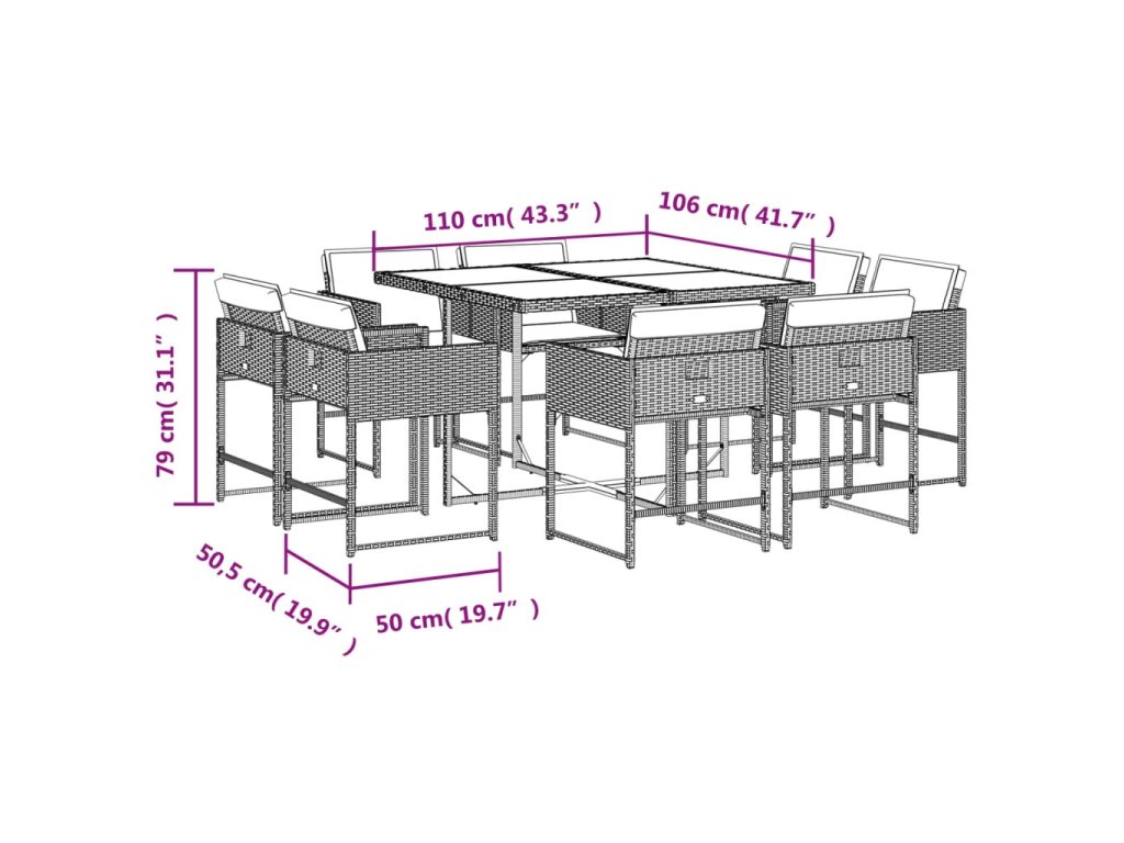 - Skleněná deska stolu: Deska zahradního stolu je zhotovena ze silného a odolného tvrzeného skla, takže ji snadno očistíte vlhkým hadříkem a zároveň do vašeho venkovního prostoru vnese nádech elegance.
