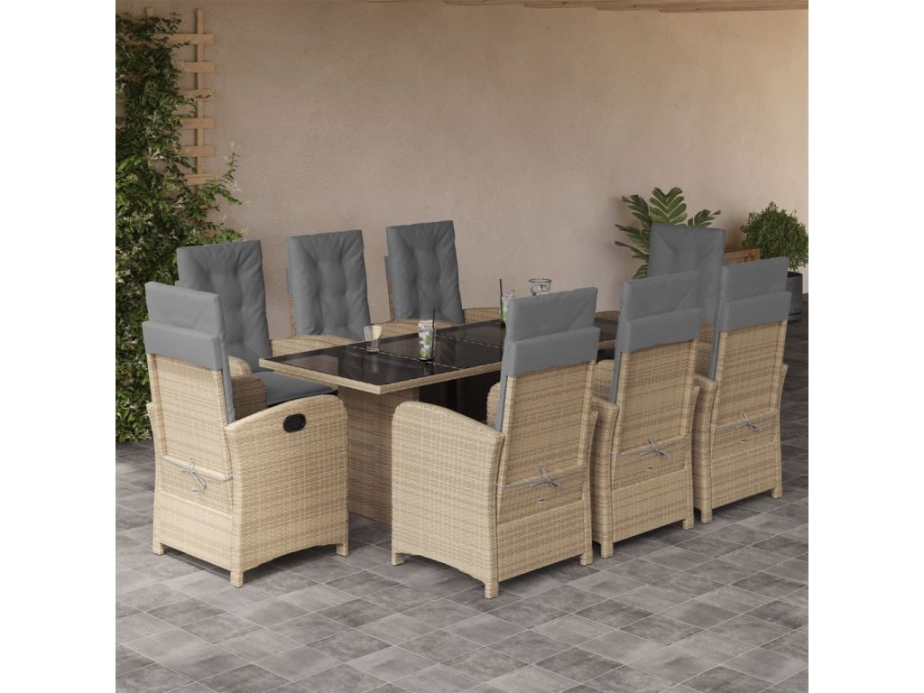 9dílný zahradní jídelní set s poduškami mix béžové polyratan 3212264