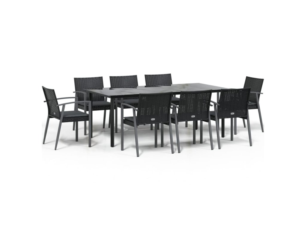 9dílný zahradní jídelní set s poduškami polyratan a ocel 3187000