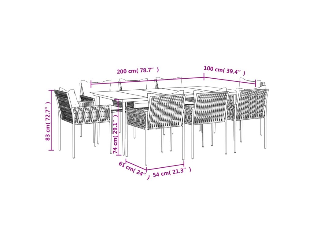 9dílný zahradní jídelní set s poduškami polyratan a ocel 3187064