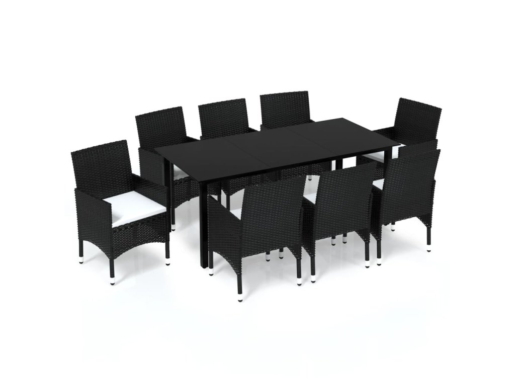 9dílný zahradní jídelní set s poduškami polyratan černý 3094978