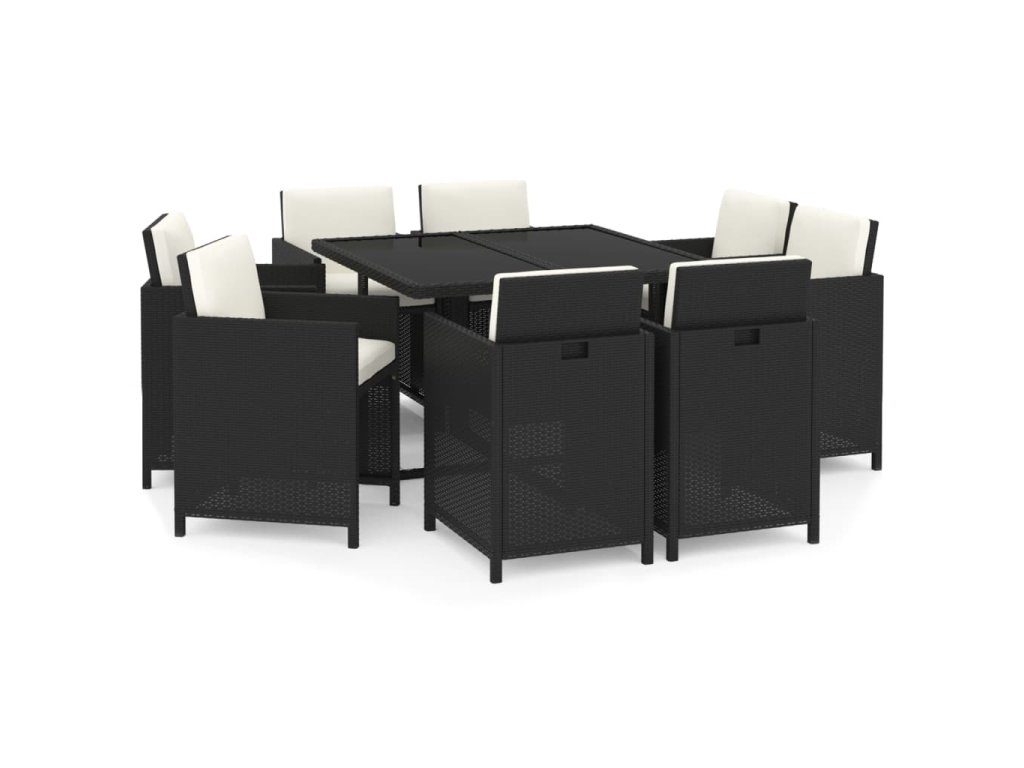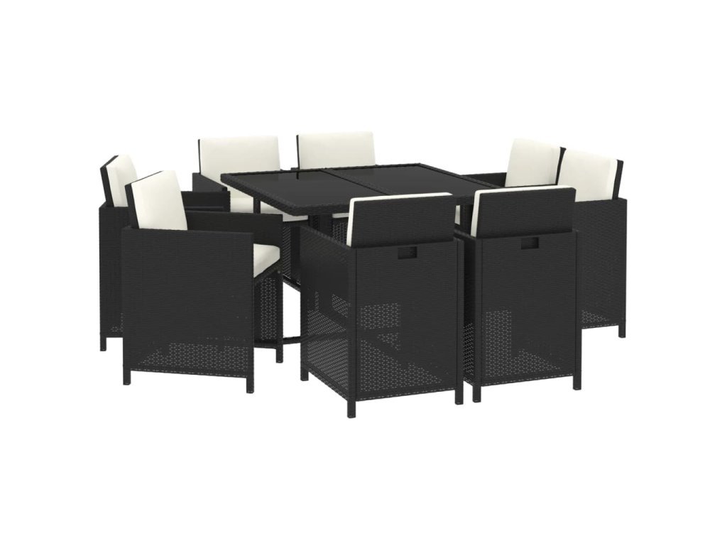 9dílný zahradní jídelní set s poduškami polyratan černý 3095505