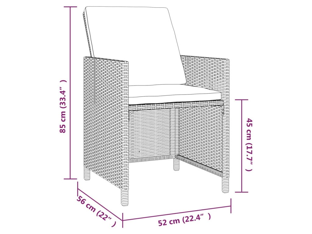 Zahradní jídelní set je vyrobený z PE ratanu odolného vůči vodě a povětrnostním vlivům, snadno se tedy čistí, hodně toho vydrží a je vhodný pro každodenní použití. Ocelový rám s práškovým nástřikem zajišťuje odolnost stolu i židlí. Skleněná stolní deska je ideální k podávání nápojů a jídla či k vystavení různých dekorativních předmětů. Silné, měkké, pěnou polstrované podušky na sedák a opěradlo zvyšují komfort při sezení. Opěradlo se dá navíc sklopit a židle lze uložit pod stůl, čímž ušetříte místo, když se nábytek nepoužívá. Vzhledem k lehké konstrukci se všechny části setu jednoduše přemisťují.