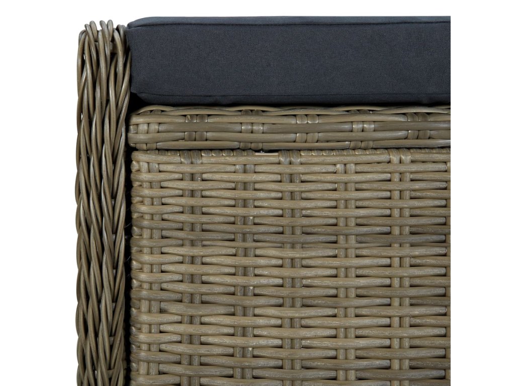 Zahradní nábytek je vyrobený z lehkého kulatého PE ratanu, který nevyžaduje téměř žádnou údržbu a snadno se čistí vlhkým hadříkem. Skvěle se proto hodí pro venkovní použití. Křesla i stůl mají rám z práškově lakované oceli, což jim zajišťuje výtečnou stabilitu a odolnost. Skleněná stolní deska dodá vašemu venkovnímu bydlení nádech luxusu a výborně vám poslouží k podávání večeře nebo k vystavení dekorativních předmětů. Polohovací židle s tlustými poduškami nabízí pohodlné a příjemné místo k odpočinku. Potah podušky je opatřený zipem, aby se vám lépe stahoval a pral. Mechanismus s plynovým pístem umožňuje nastavit opěradlo do různých pozic. Stisknutím bočního tlačítka můžete opěradlo sklopit a příjemně se natáhnout. Židle je jako stvořená k relaxaci, zvlášť když si položíte nohy na sladěnou podnožku, kterou můžete přesouvat podle vašich potřeb.