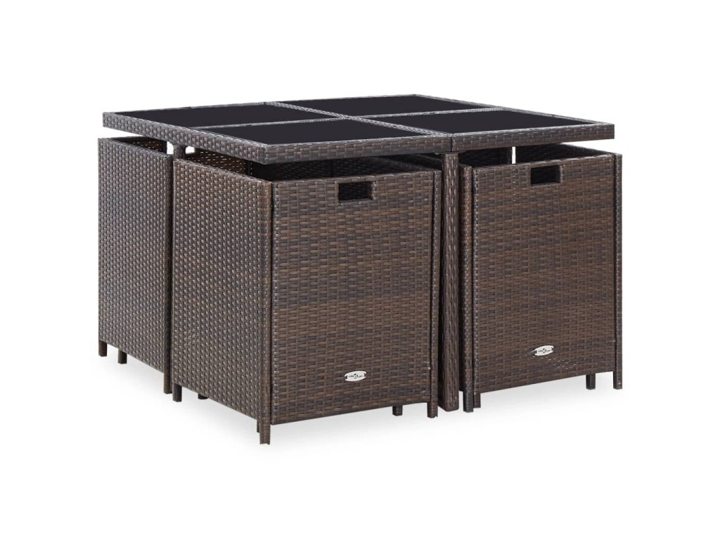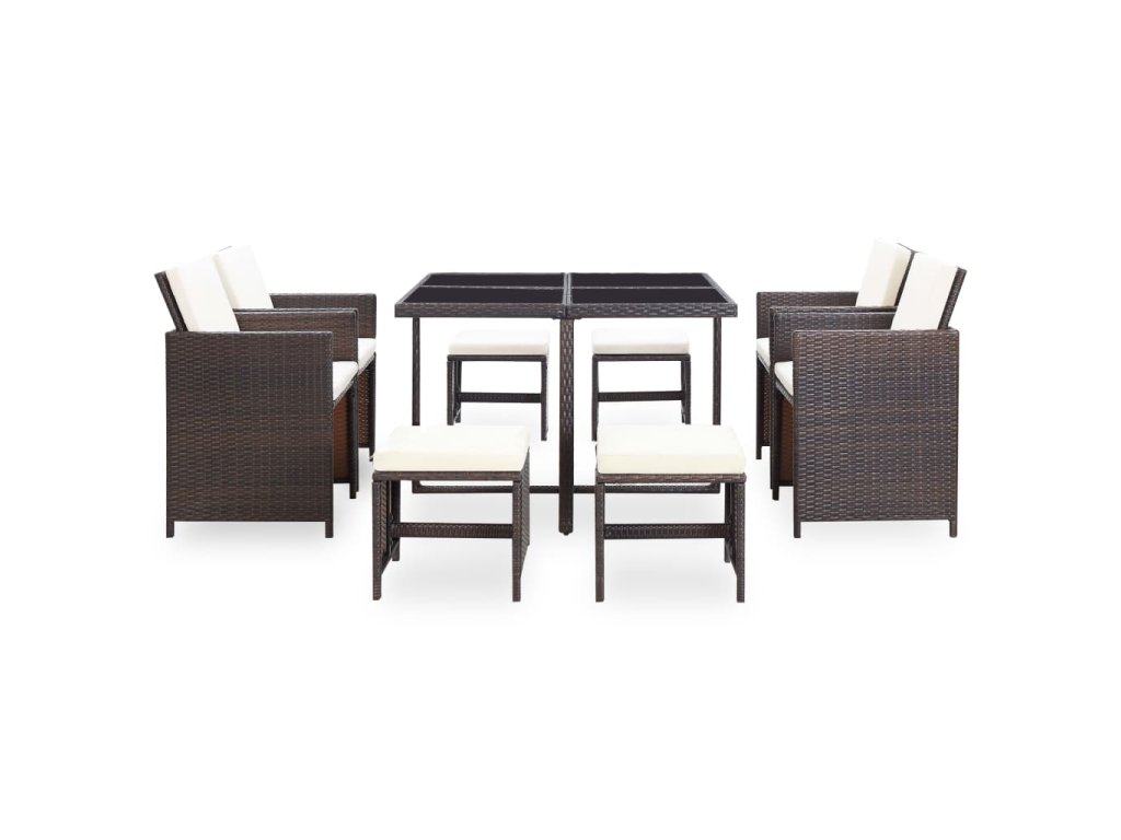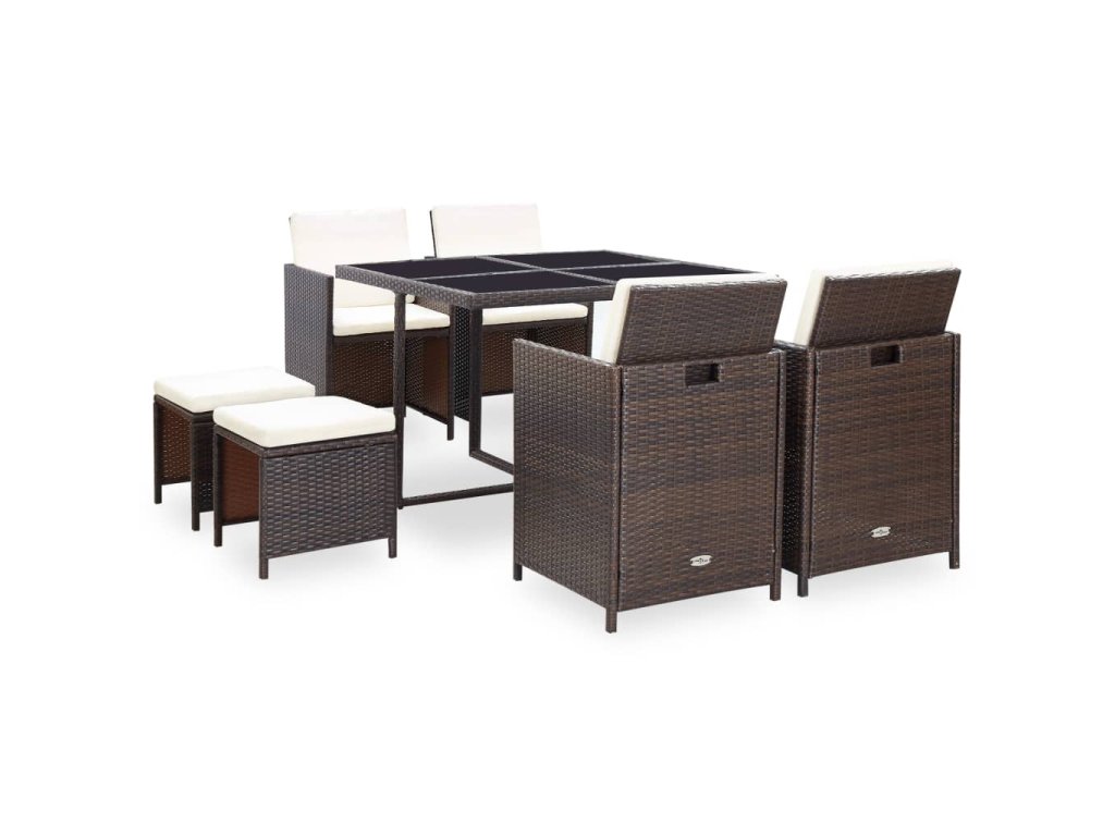9dílný zahradní jídelní set s poduškami polyratan hnědý 42526