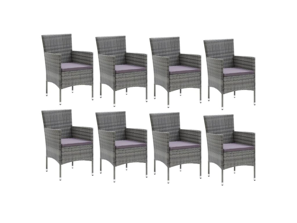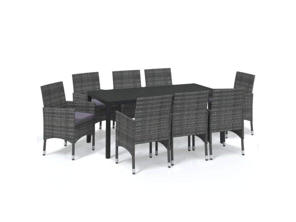 9dílný zahradní jídelní set s poduškami polyratan šedý 3095026