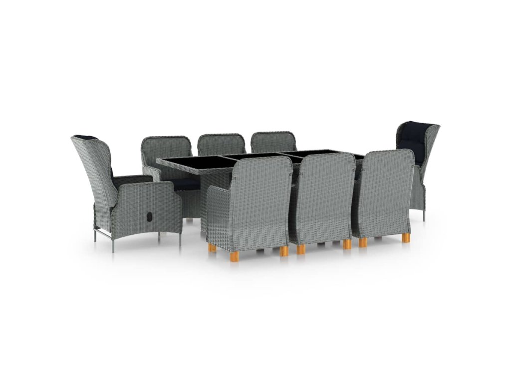 9dílný zahradní jídelní set s poduškami polyratan světle šedý 3060187