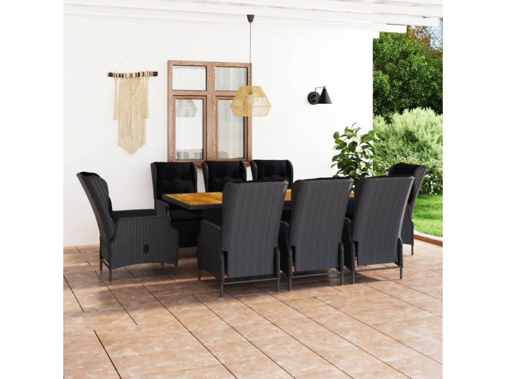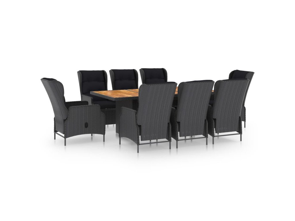 9dílný zahradní jídelní set s poduškami polyratan tmavě šedý 3060139