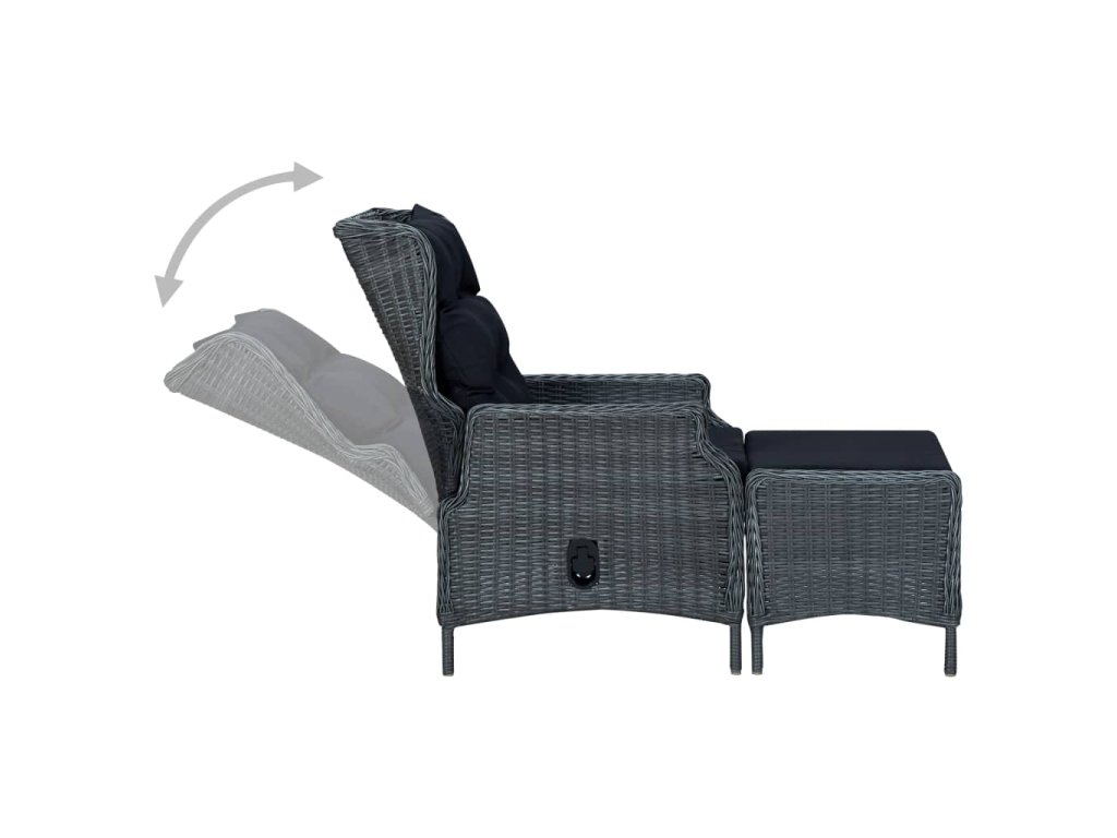 Zahradní nábytek je vyrobený z lehkého kulatého PE ratanu, který nevyžaduje téměř žádnou údržbu a snadno se čistí vlhkým hadříkem. Skvěle se proto hodí pro venkovní použití. Křesla i stůl mají rám z práškově lakované oceli, což jim zajišťuje výtečnou stabilitu a odolnost. Skleněná stolní deska dodá vašemu venkovnímu bydlení nádech luxusu a výborně vám poslouží k podávání večeře nebo k vystavení dekorativních předmětů. Polohovací židle s tlustými poduškami nabízí pohodlné a příjemné místo k odpočinku. Potah podušky je opatřený zipem, aby se vám lépe stahoval a pral. Mechanismus s plynovým pístem umožňuje nastavit opěradlo do různých pozic. Stisknutím bočního tlačítka můžete opěradlo sklopit a příjemně se natáhnout. Židle je jako stvořená k relaxaci, zvlášť když si položíte nohy na sladěnou podnožku, kterou můžete přesouvat podle vašich potřeb.