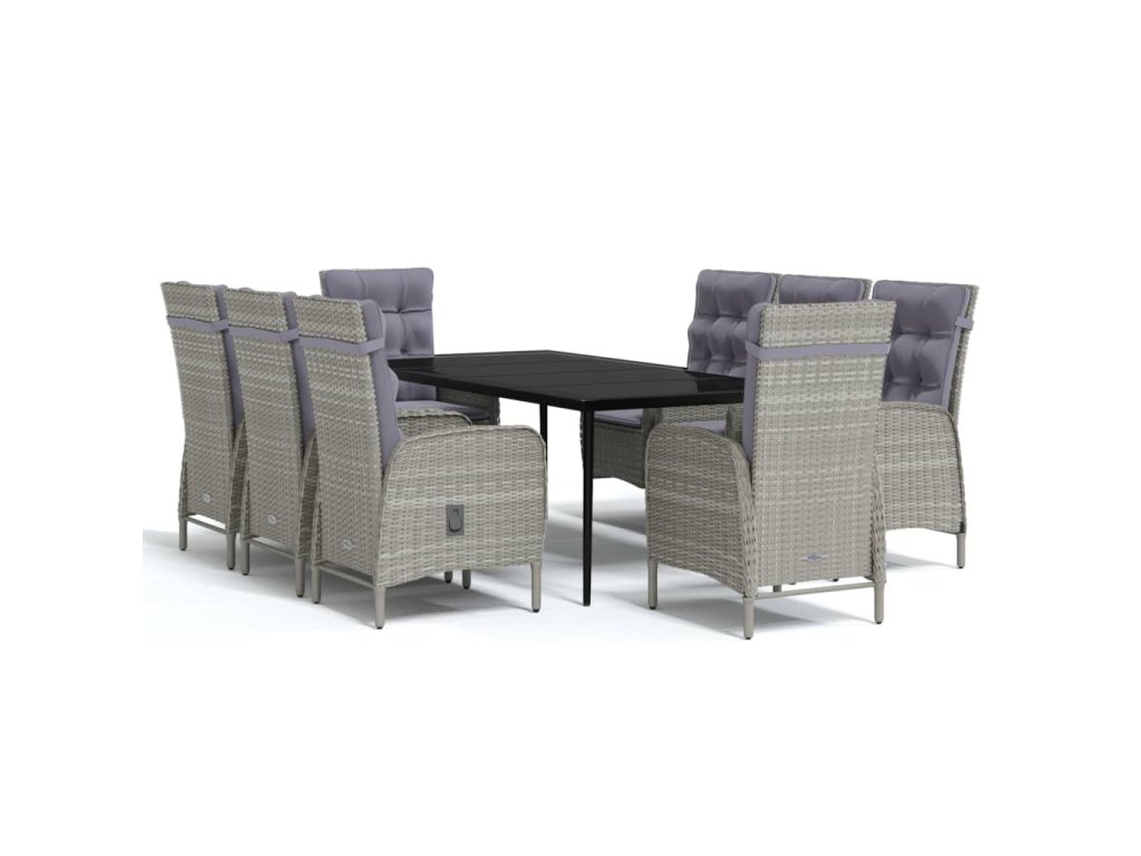 9dílný zahradní jídelní set s poduškami šedočerný 3099376