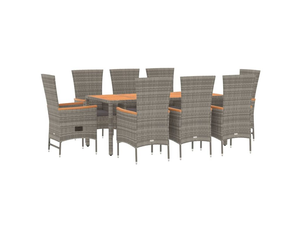 9dílný zahradní jídelní set s poduškami šedý polyratan 3157544